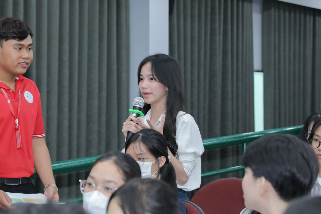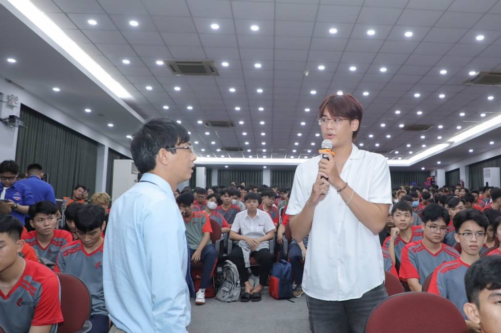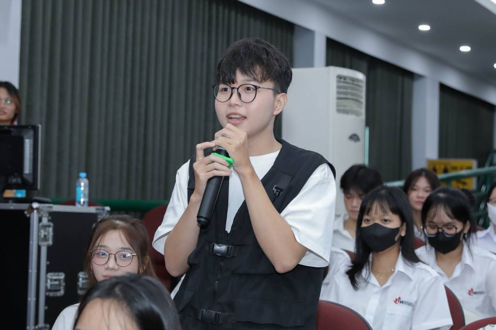 Sau phần chia sẻ của thầy cô và các chuyên gia, sinh viên K21 đã hào hứng giơ tay đặt câu hỏi để làm rõ những băn khoăn của mình