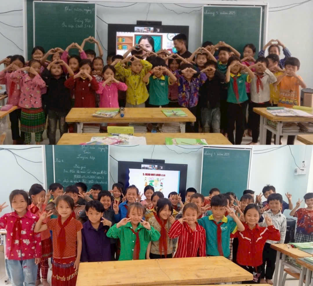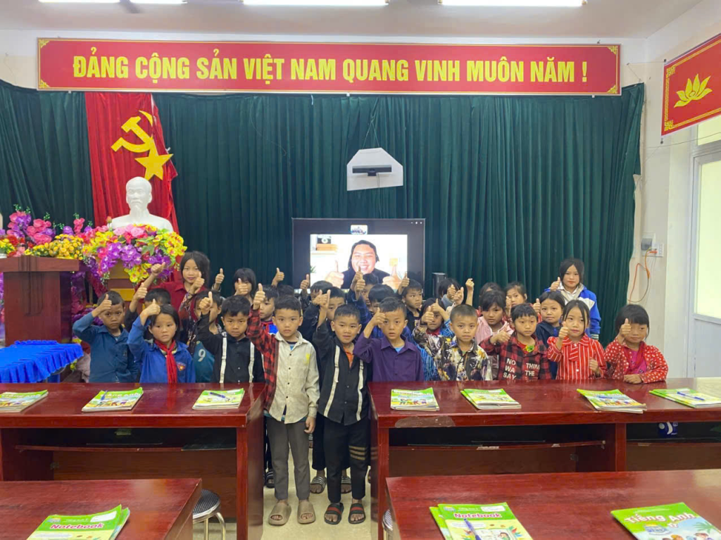 Tại xã Mèo Vạc, mô hình lớp học tiếng Anh trực tuyến được triển khai như một phương thức mới mẻ, giúp học sinh vùng cao tiếp cận ngoại ngữ theo chương trình chính quy của Bộ Giáo dục và Đào tạo. Với sự đồng hành của sinh viên IUH qua màn hình ti vi và sự hỗ trợ trực tiếp từ giáo viên chủ nhiệm, những giờ học không chỉ giúp các em làm quen với từ vựng, ngữ pháp cơ bản, mà còn mở ra cánh cửa để các em giao tiếp, kết nối với thế giới rộng lớn hơn.