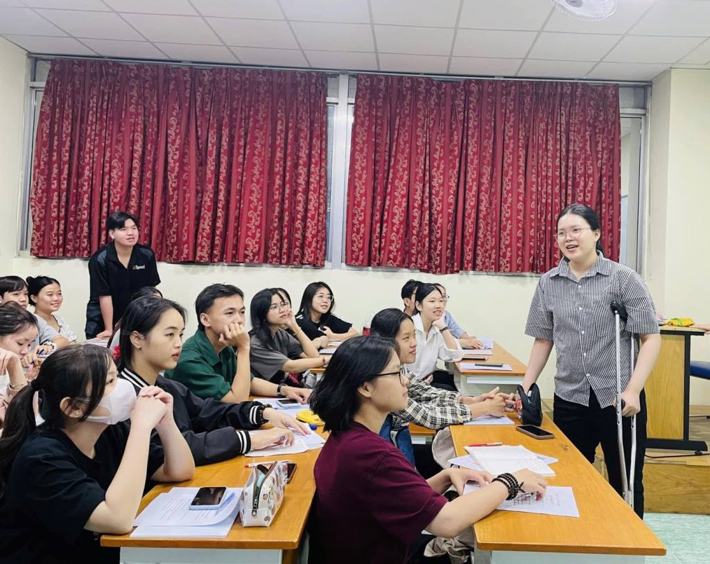 Sinh viên Đoàn Thị Mỹ Khương (ĐHAV16) tham gia học môn Phương Pháp Giảng Dạy Ngoại Ngữ năm học 2024 - 2025